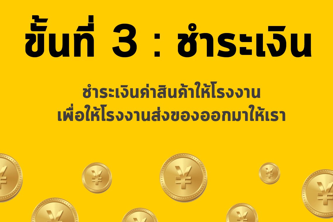 เมื่อสรุปออร์เดอร์สินค้าที่ต้องการสั่งจากจีนได้แล้ว ทางโรงงานจะแจ้งยอดค่าสินค้ามาให้เพื่อชำระเงินและทางโรงงานจะทำการส่งของออกมาให้ที่โกดังเราที่จีน